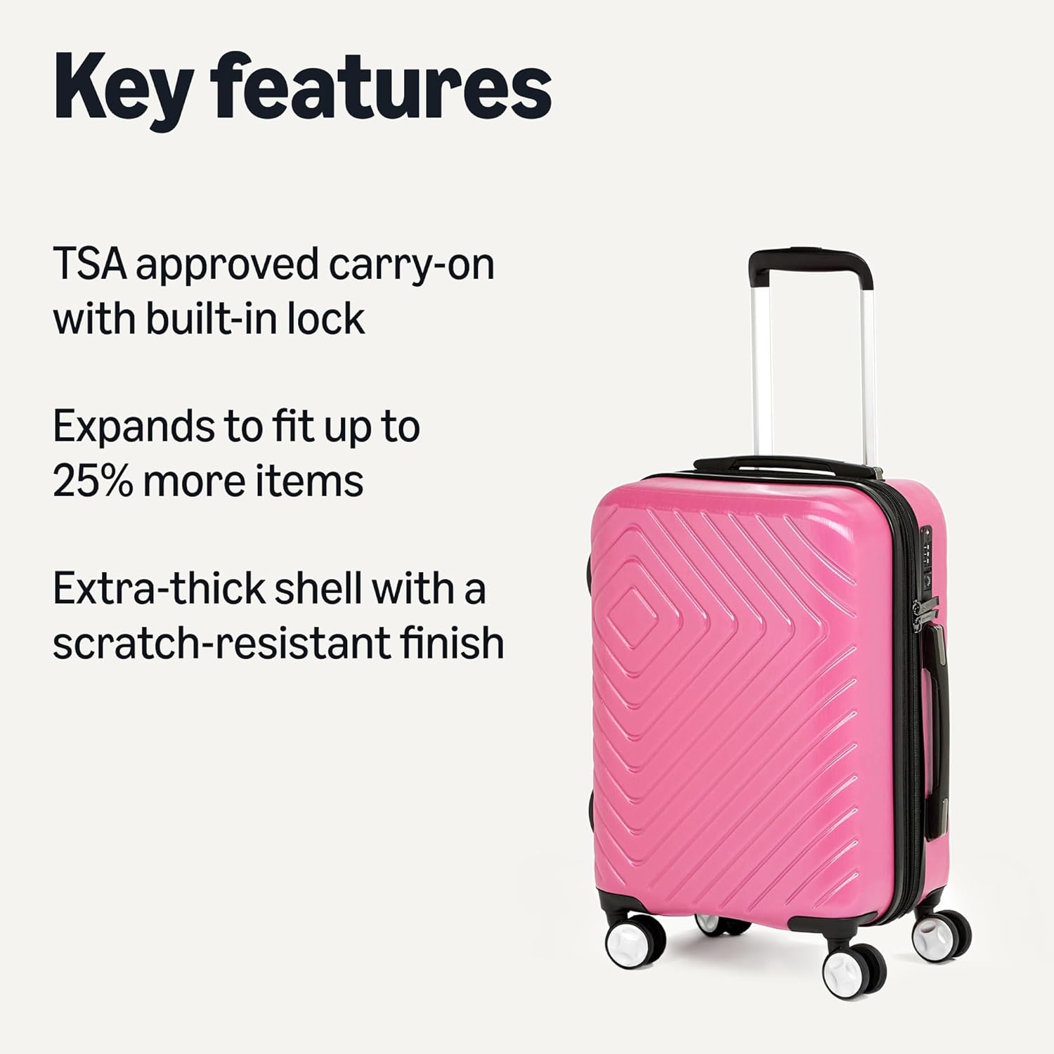 • TSA-Approved Recessed Lock for travel security