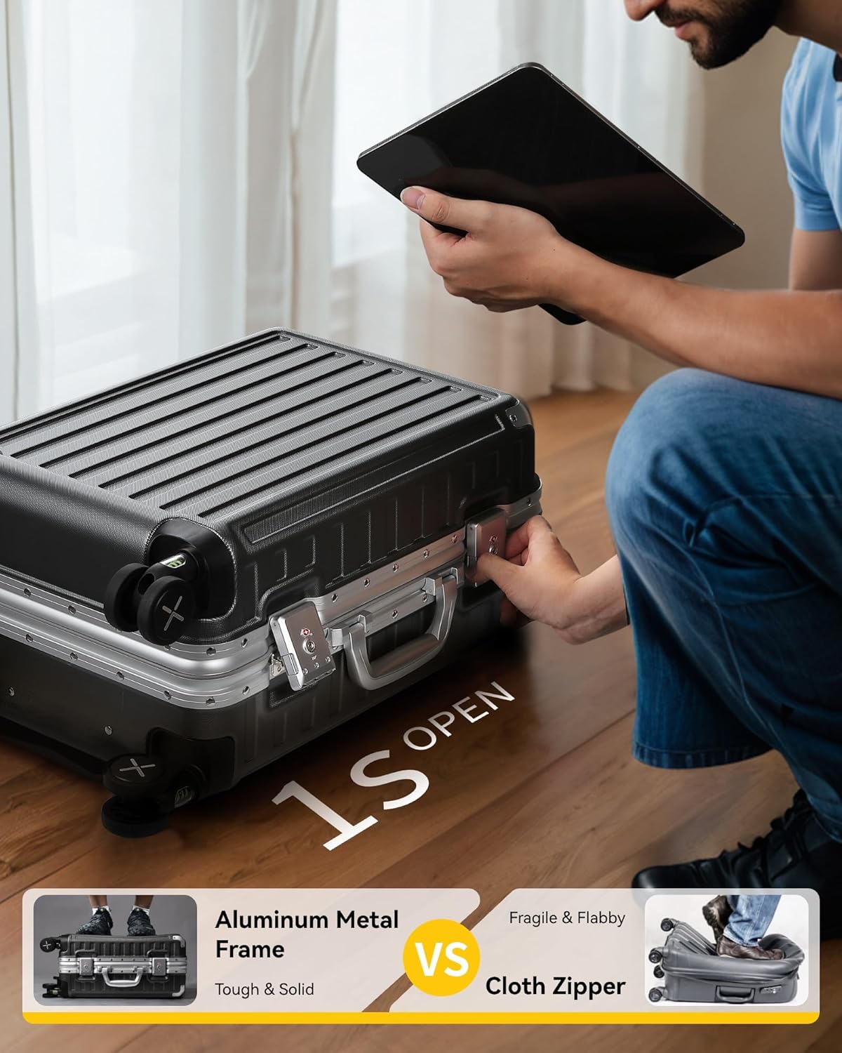 Built to withstand the rigors of modern travel, this hard-sided carry-on is reinforced with a durable aluminum frame and four aluminum corner protectors. These structural enhancements provide increased resistance against impact, drops, and extreme temperatures—ensuring your case and contents stay safe even under tough conditions.